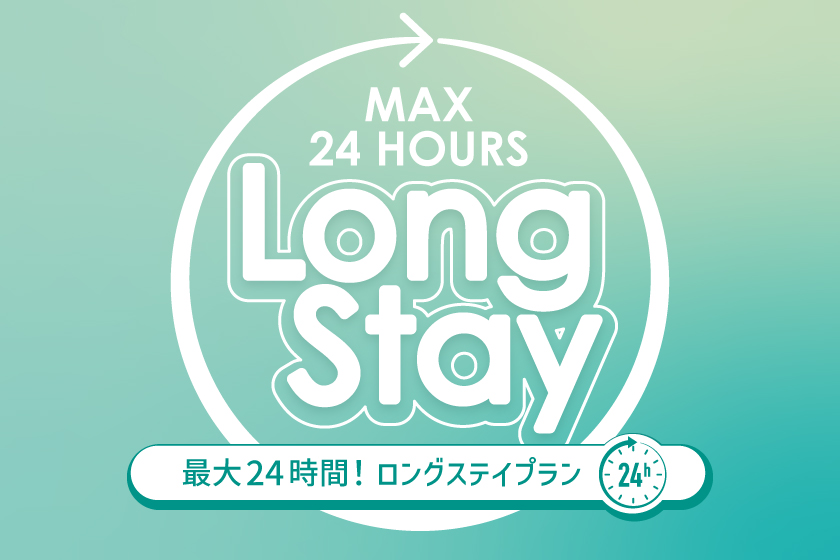 12時チェックイン、翌日12時チェックアウトの最大24時間滞在できるプランです。