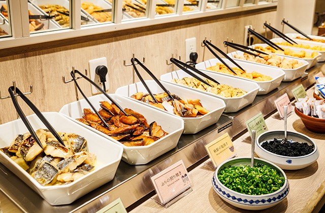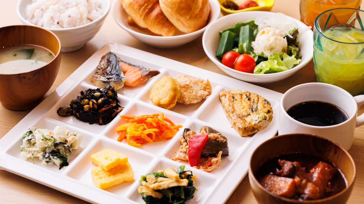 白米は厳選したコシヒカリ、こだわりの和総菜をはじめとしたご宿泊のお客さま限定の和洋食のビュッフェです。