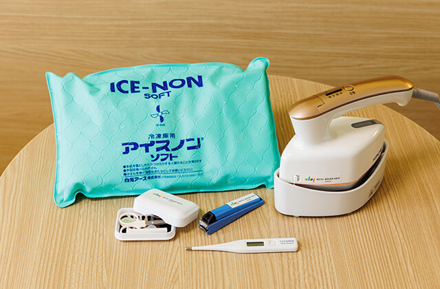[無料]氷枕、ソーイングセット、つめ切り、体温計、衣類スチーマー