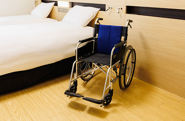 車いす入浴補助具(浴槽手すり)、入浴補助具(踏み台)、入浴補助具(シャワーベンチ)、大型表示電話機、ドアノックセンサー、補助犬用マット、補助犬用フードボウル ※車いすは館内でのご利用に限ります。 |