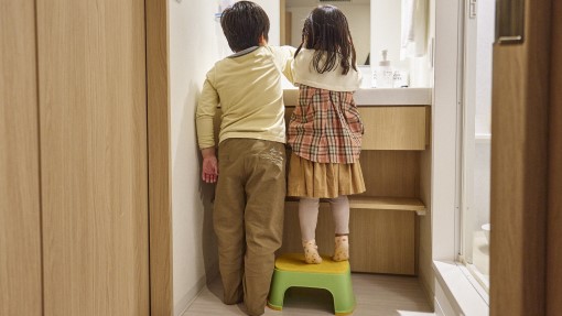 洗面台にはお子さま用の踏み台もご用意しています。
