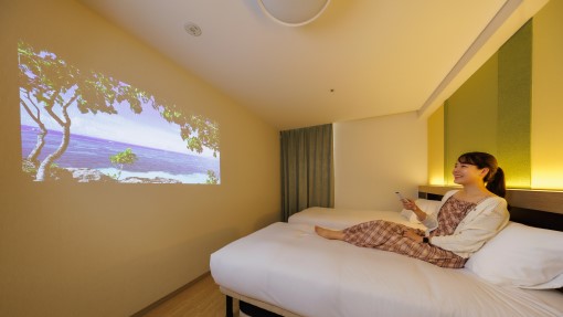 全室には照明一体型プロジェクターや冷凍冷蔵庫を備えており、夜のおしゃべりやリラックスタイムもより快適に。