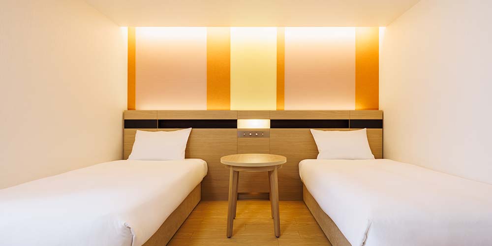 Furniture and Fixtures | Bed, sofa bed, table, sofa, integrated lighting projector, refrigerator/freezer, smart TV (with breakfast crowd status display, laundry status display, and in-room checkout function), humidifying air purifier, safety deposit box, free calling service, electric kettle, shoe dryer, step stool, hand mirror, deodorizing/disinfecting spray, shower (ReFa Fine Bubble U multi-function showerhead), hair dryer (Panasonic Nano Care), accessory tray, cups, glasses (including children's), trash can, shoehorn, clothes brush, hangers |