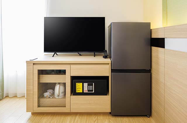 Guest rooms are equipped with a projector built into the lighting fixture, a television (with access to terrestrial digital channels and Disney Channel), a refrigerator with freezer compartment, a safety deposit box, a humidifying air purifier, an electric kettle, a shoe dryer, a step stool, and a hairdryer.