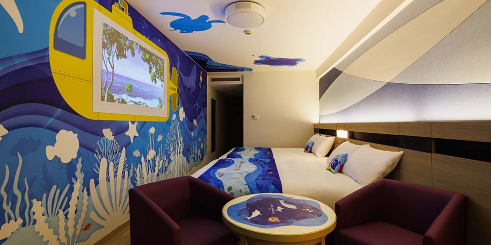 Furniture and Fixtures | Bed, sofa bed, table, sofa, integrated lighting projector, refrigerator/freezer, smart TV (with breakfast crowd status display, laundry status display, and in-room checkout function), humidifying air purifier, safety deposit box, free calling service, electric kettle, shoe dryer, step stool, hand mirror, deodorizing/disinfecting spray, shower (ReFa Fine Bubble U multi-function showerhead), hair dryer (Panasonic Nano Care), accessory tray, cups, glasses (including children's), trash can, shoehorn, clothes brush, hangers |